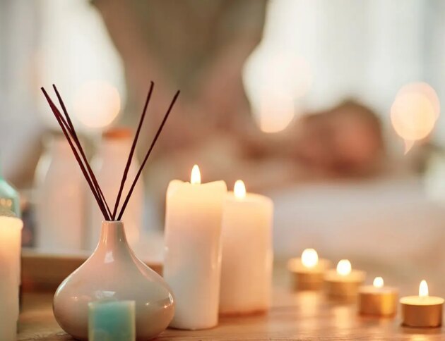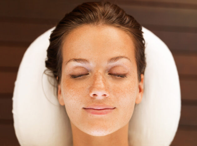 A young woman lying in a health spa Cropped shot of various pampering essentials in...
